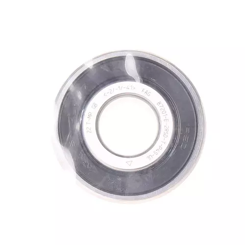 前缀列表:【B:标准钢球轴承】。后缀列表:【-E:接触角 25°】【-2RSD:两侧带非接触式橡胶密封件,且已填充润滑脂】【-T:外圈引导,酚醛增强纤维层压尼龙窗式保持架】【-P4S:FAG标准,P4S级精度,高过 DIN620 标准 P4级】【-U:单个轴承,万能配对】【L:轻预紧】。