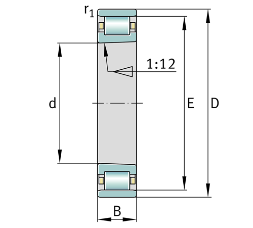 | E | 100 mm | 外圈滚道直径 |