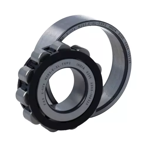FAG N203-E-XL-TVP2轴承属于圆柱滚子轴承 N2..-E-TVP 系列,带保持架,单列,非定位轴承,外圈无挡边,内圈双挡边,N2型。