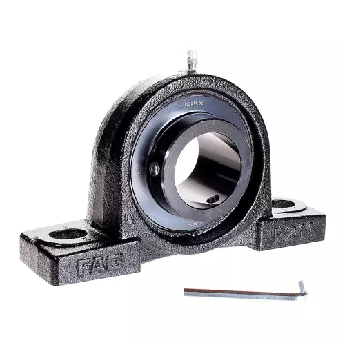 FAG UCP211-32轴承属于UCP型轴承座安装单元,铸铁外壳,带长基座,带外球面球轴承,使用平头螺钉固定,带RSR密封件。
