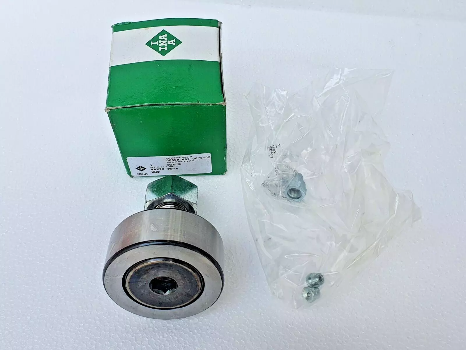 INA KRV72-PP轴承属于螺栓滚轮轴承 KRV..-PP 系列,带轴向引导,满装滚针组件,两侧带塑料材质轴向平垫圈。