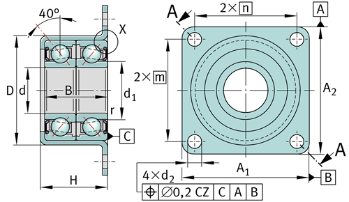 丝杠用双列推力角接触球轴承单元(螺栓安装)