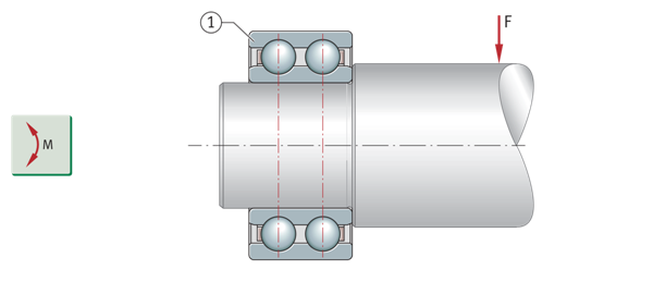 如果负载偏心,轴承会受到倾斜力矩的作用。除了双列深沟球轴承和角接触球轴承外,在这种情况下,适合使用面对面或背对背配对的单列角接触球或圆锥滚子轴承