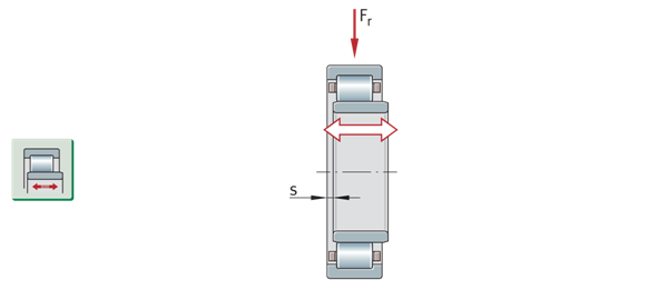 圆柱滚子轴承NU,非定位轴承,轴承内位移补偿 s=轴向位移距离 | ![]() |