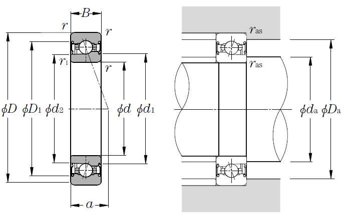 | 密封高速角接触球轴承 - BNS Ultage系列 - 尺寸 | |