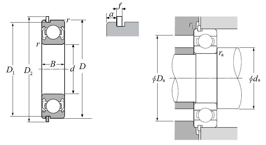| 单列深沟球轴承 - 双面防尘盖带止动环 - 尺寸 | |