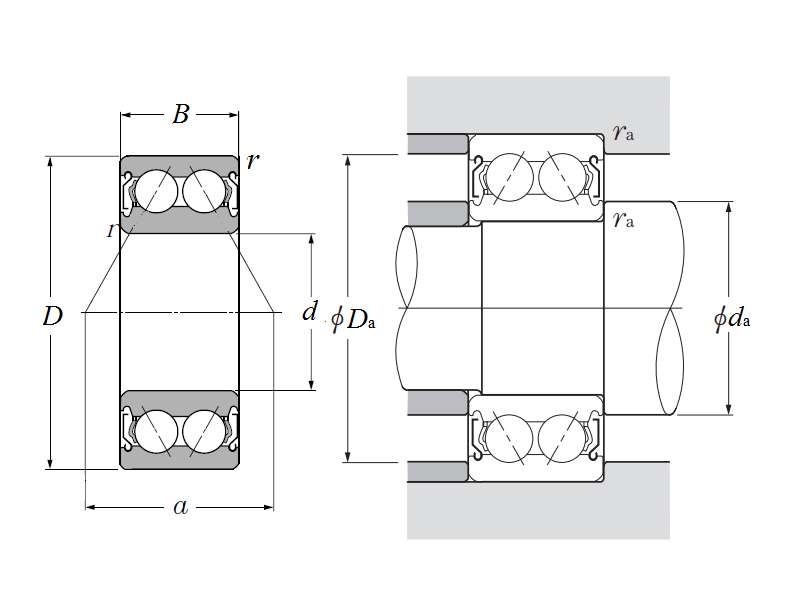 | 双列角接触球轴承 - 双面防尘盖 - 尺寸 | |