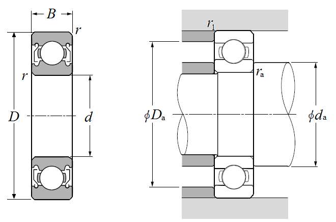 | 陶瓷滚动体深沟球轴承 - 尺寸 | |