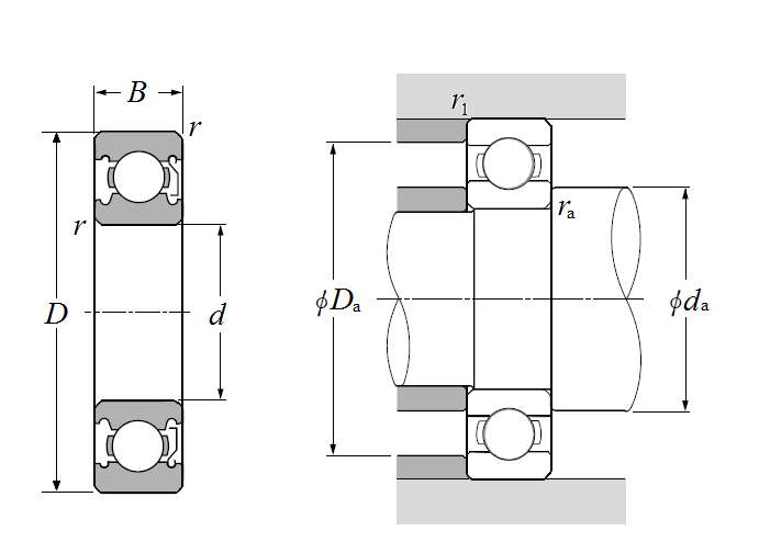 | 单列深沟球轴承 - 单面防尘盖 - 尺寸 | |