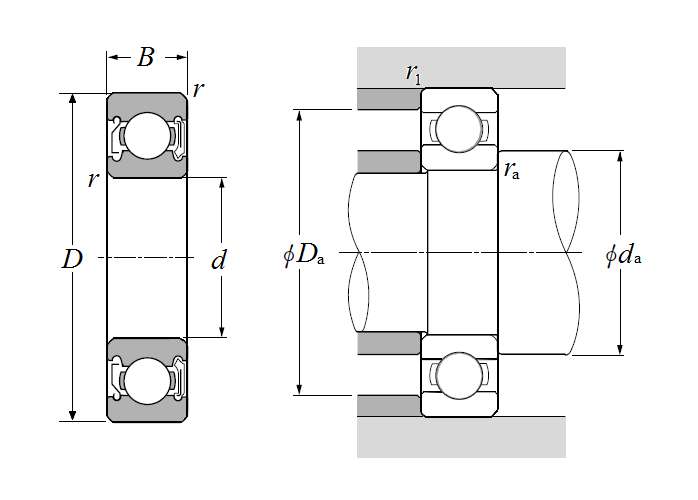| 单列深沟球轴承 - 单面防尘盖&单面密封(非接触式橡胶密封) - 尺寸 | |