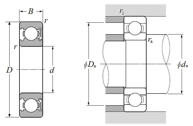| 单列深沟球轴承 - 单面密封(非接触式橡胶密封) - 尺寸 | |