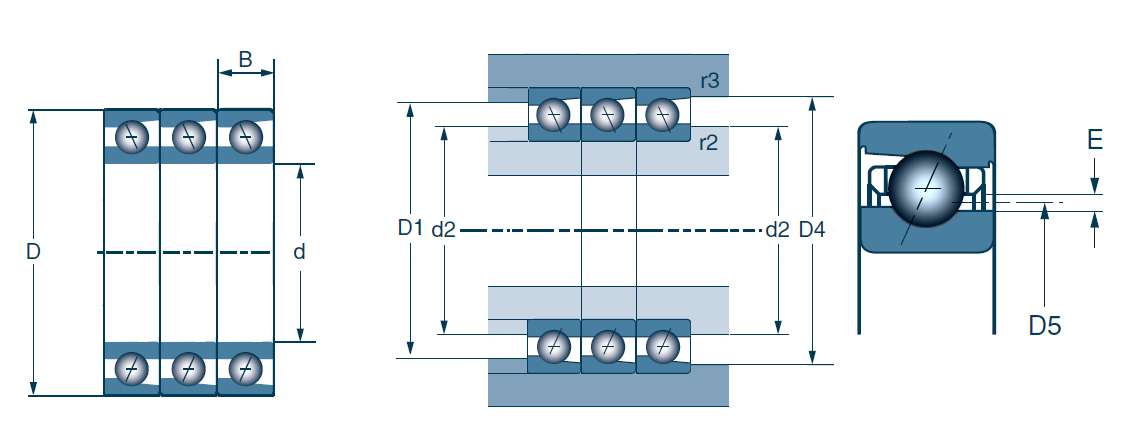 | 三列角接触球轴承,机床用,Q15型 - 尺寸 | |