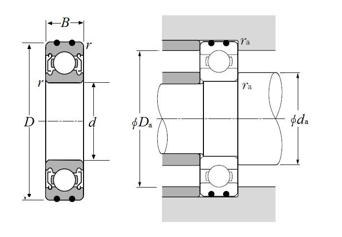 | AC轴承 - 双面防尘盖 - 尺寸 | |