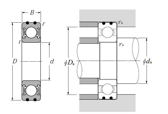 | AC轴承 - 双面密封(接触式橡胶密封) - 尺寸 | |