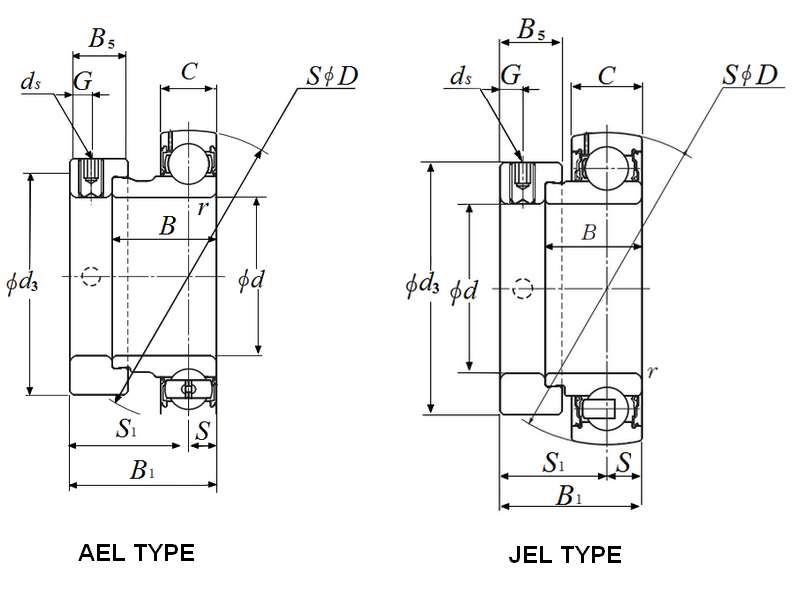 AEL:窄内圈,带止动环槽