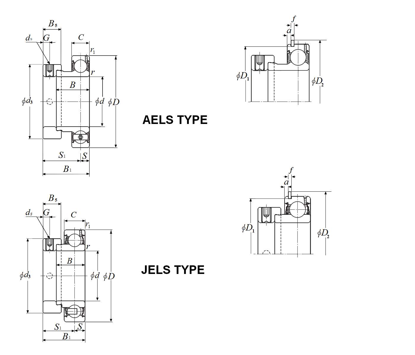 AEL:窄内圈,带止动环槽