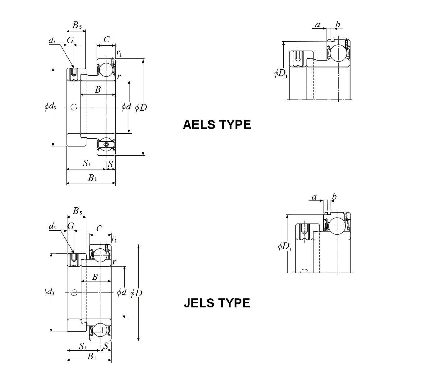 AEL:窄内圈,带止动环槽