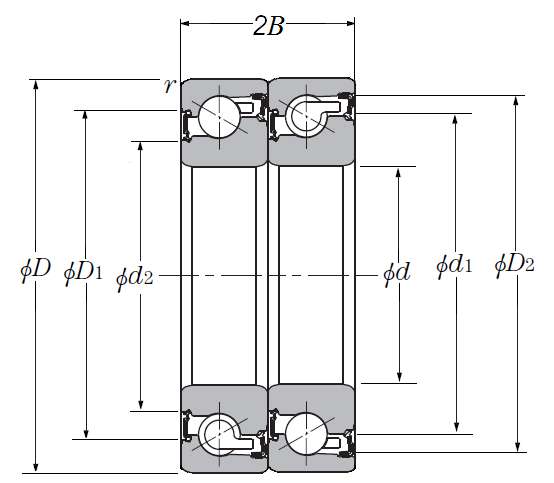 | 滚珠丝杠用双角接触推力球轴承 - 串联配对,双面密封,一排承受轴向载荷 - 尺寸 | |
