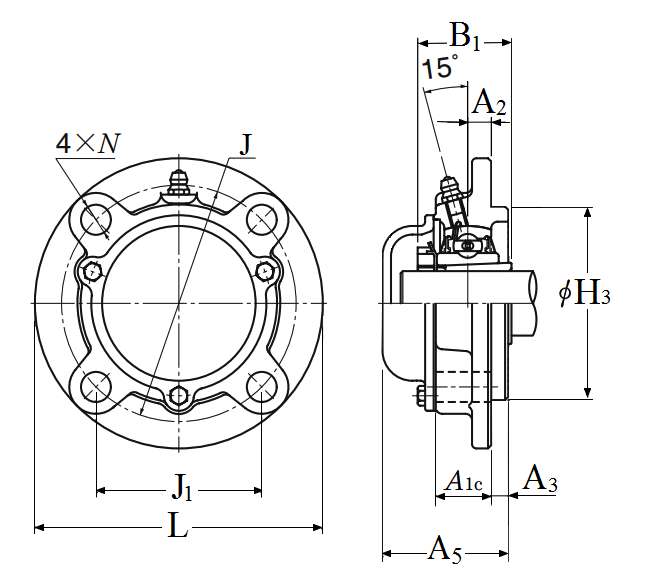 | 类型 | 四螺栓圆形法兰式轴承座 |