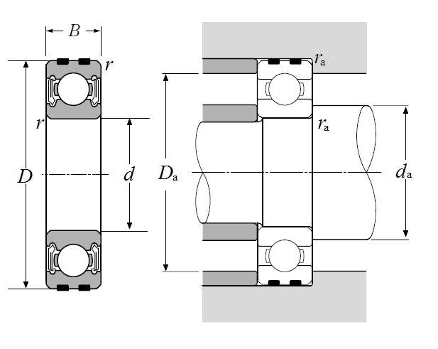 | 膨胀补偿轴承 - 双面密封(非接触式橡胶密封) - 尺寸 | |