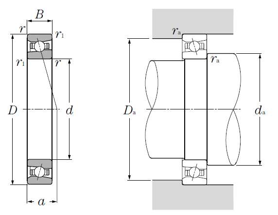 | 超高速单列角接触球轴承 - 尺寸 | |
