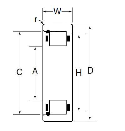 | 带保持架和滚子的外圈,一边带加强筋&一边带挡圈 - 尺寸 | |