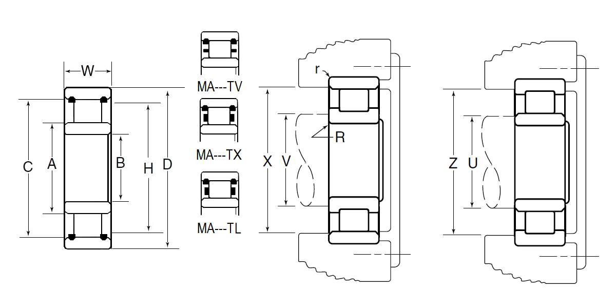 MA:M:NTN BOWER产品,标准公制尺寸系列,A:滑动内圈