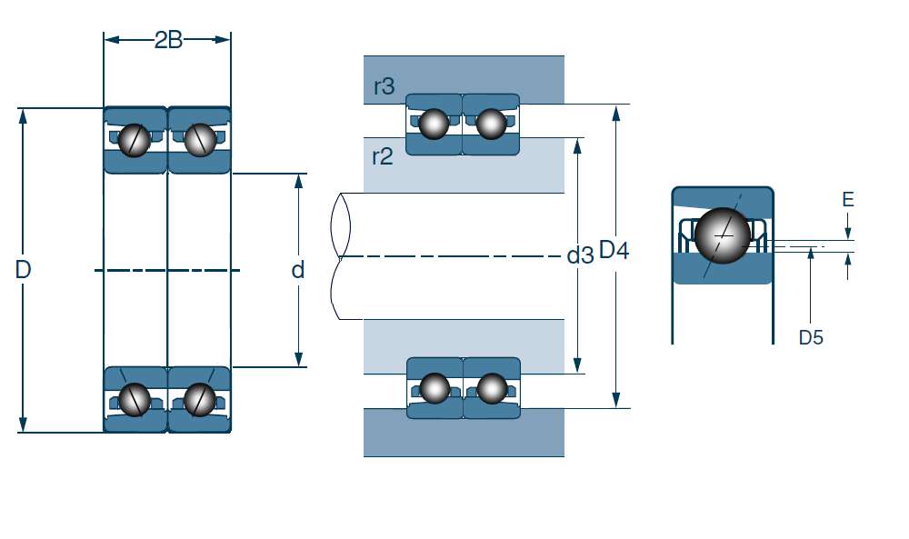 | 高速双列混合陶瓷角接触球轴承,高精度 - 万能平顶轴承 - 尺寸 | |