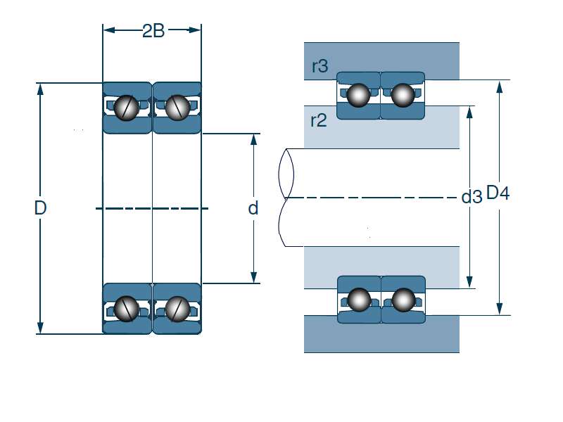| 密封双联角接触球轴承,高精度 - 尺寸 | |
