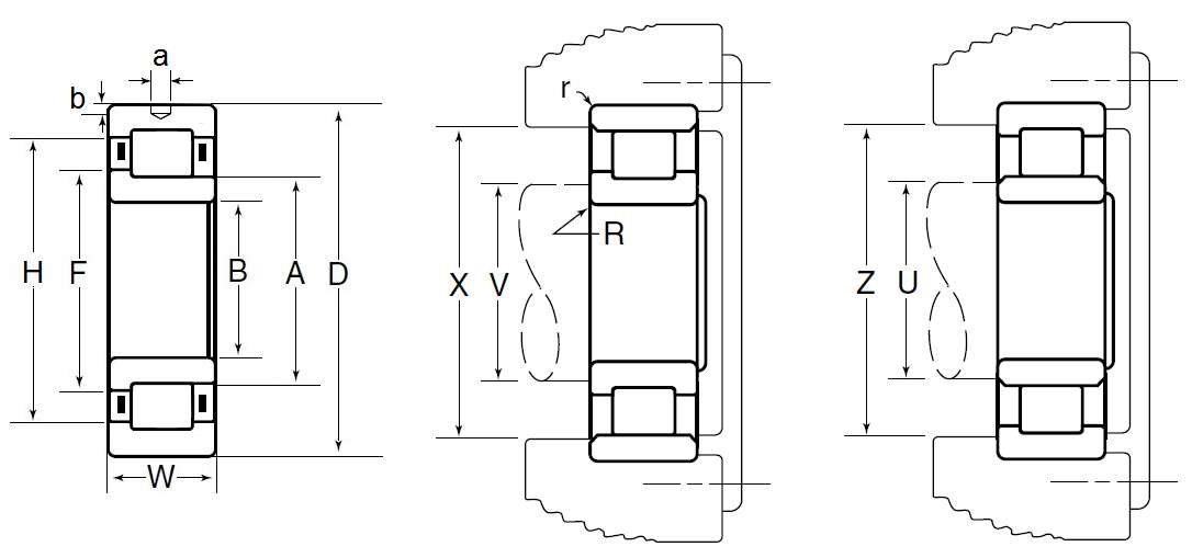 M:NTN BOWER产品,标准公制尺寸系列,R:内圈单挡边
