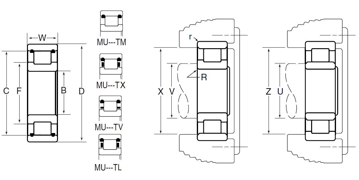 MU:M:NTN BOWER产品,标准公制尺寸系列,U:内圈双挡边