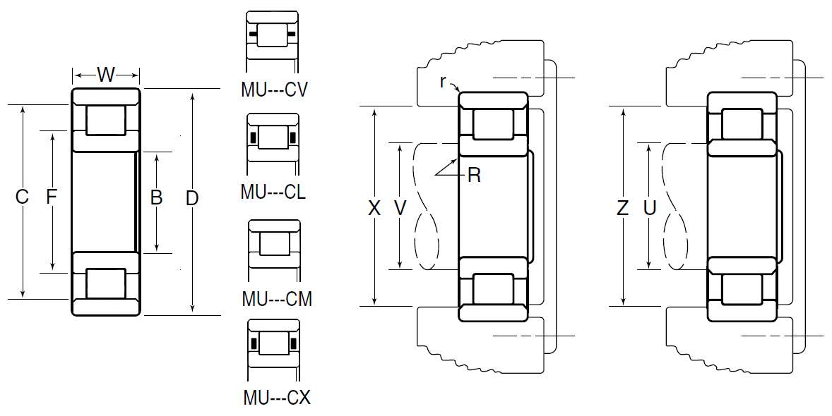 MU:M:NTN BOWER产品,标准公制尺寸系列,U:内圈双挡边