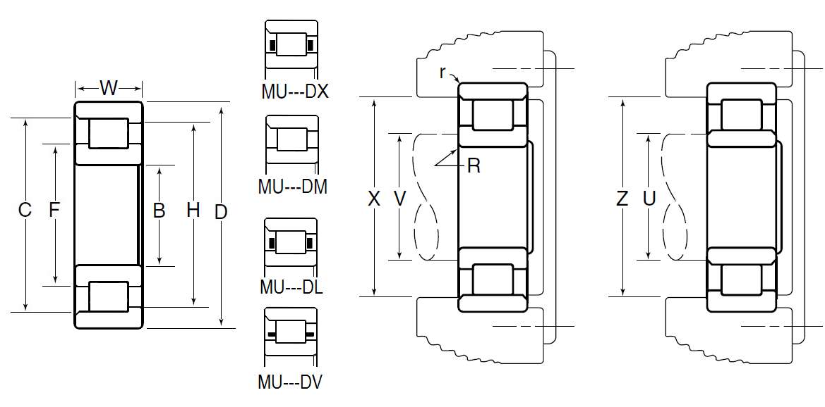 MU:M:NTN BOWER产品,标准公制尺寸系列,U:内圈双挡边