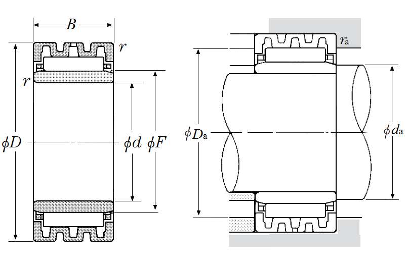 | 游隙可调滚针轴承带内圈 - 尺寸 | |
