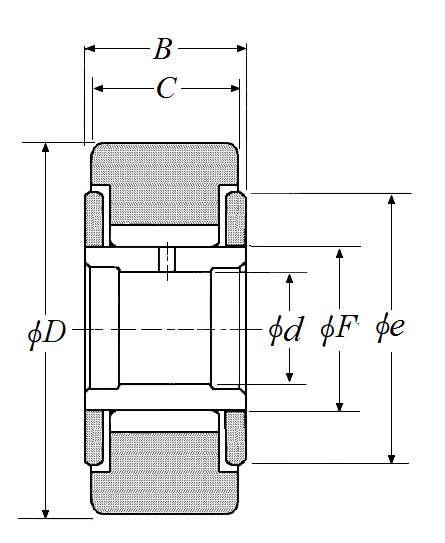 | 挡圈型滚轮轴承 - 带内圈,NATV型,圆柱内径 - 尺寸 | |