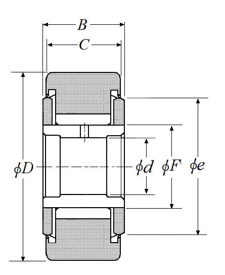 | 挡圈型滚轮轴承 - 带内圈,双面密封,NATV型,圆柱内径 - 尺寸 | |