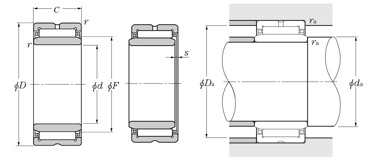 | 机加工滚针轴承带内圈 - NA49.R,NA59,NA69R,NK.R+1R系列 - 尺寸 | |