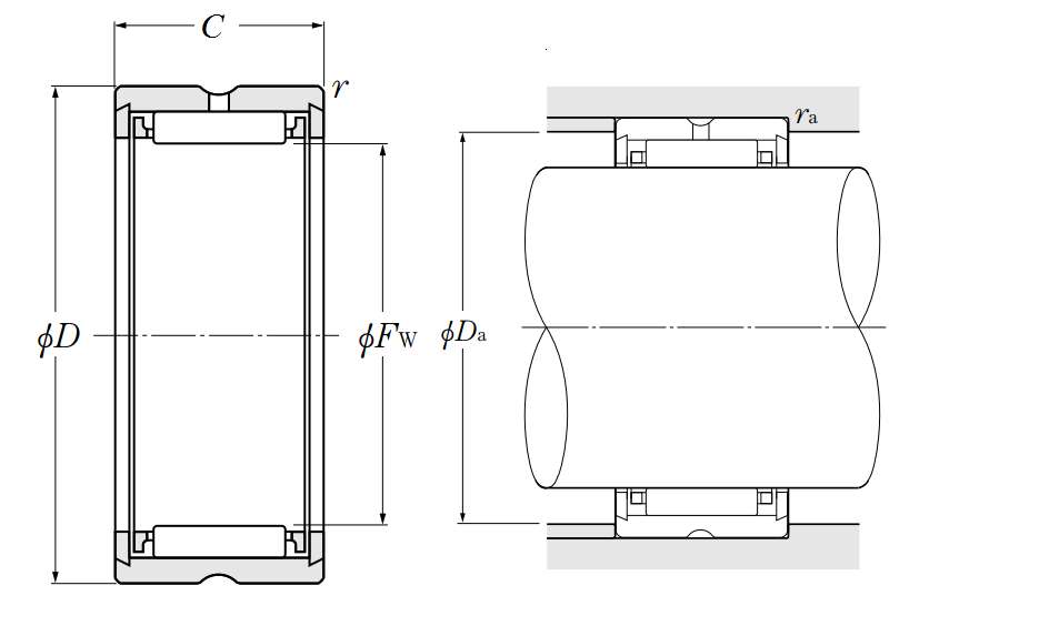 | 机加工滚针轴承不带内圈 - RNA48,RNA49系列 - 尺寸 | |