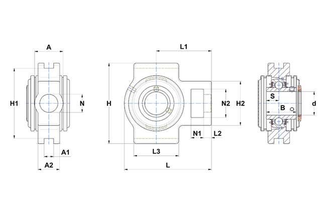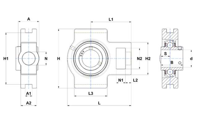 | 滑块式轴承座,带紧定螺钉,不锈钢外壳,SUCT型 - 尺寸 | |