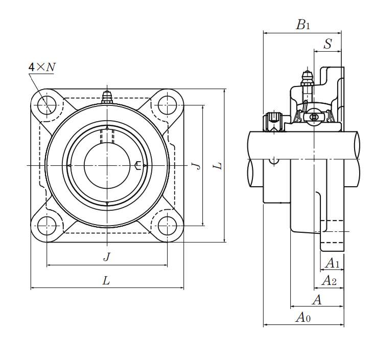 | 类型 | 四螺栓方形法兰式轴承座 |