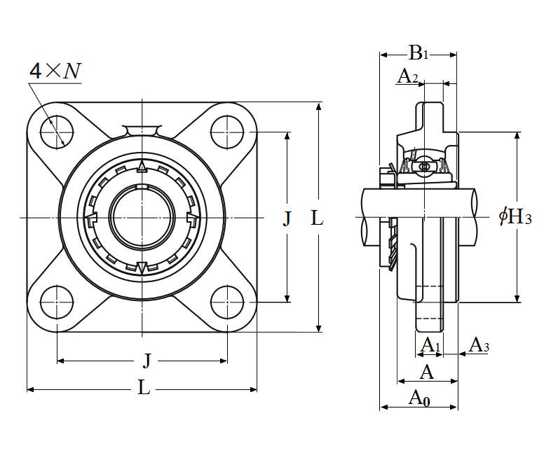 | 类型 | 四螺栓方形法兰式轴承座 |