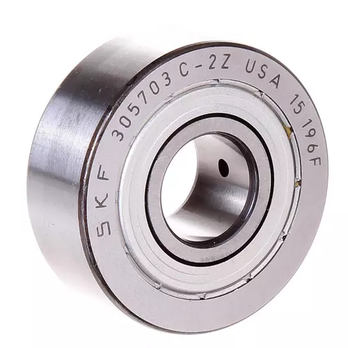 SKF 305703C-2Z轴承属于凸轮滚子,外径:47 mm,内径:17 mm,宽度:17.5 mm,内圈肩部/凹槽处直径(≈):23.3 mm,外圈凹槽直径(≈):35 mm,倒角尺寸(min.):0.6 mm,距离载荷点:23 mm。