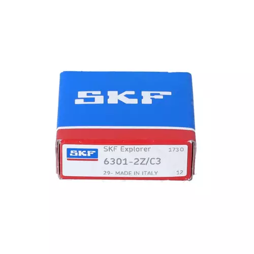 SKF 6301-2Z轴承属于深沟球轴承,内径:12 mm,外径:37 mm,宽度:12 mm,内圈肩部直径(≈):19.51 mm,外圈肩部凹槽直径(≈):31.48 mm,外圈倒角尺寸(min.):1 mm。