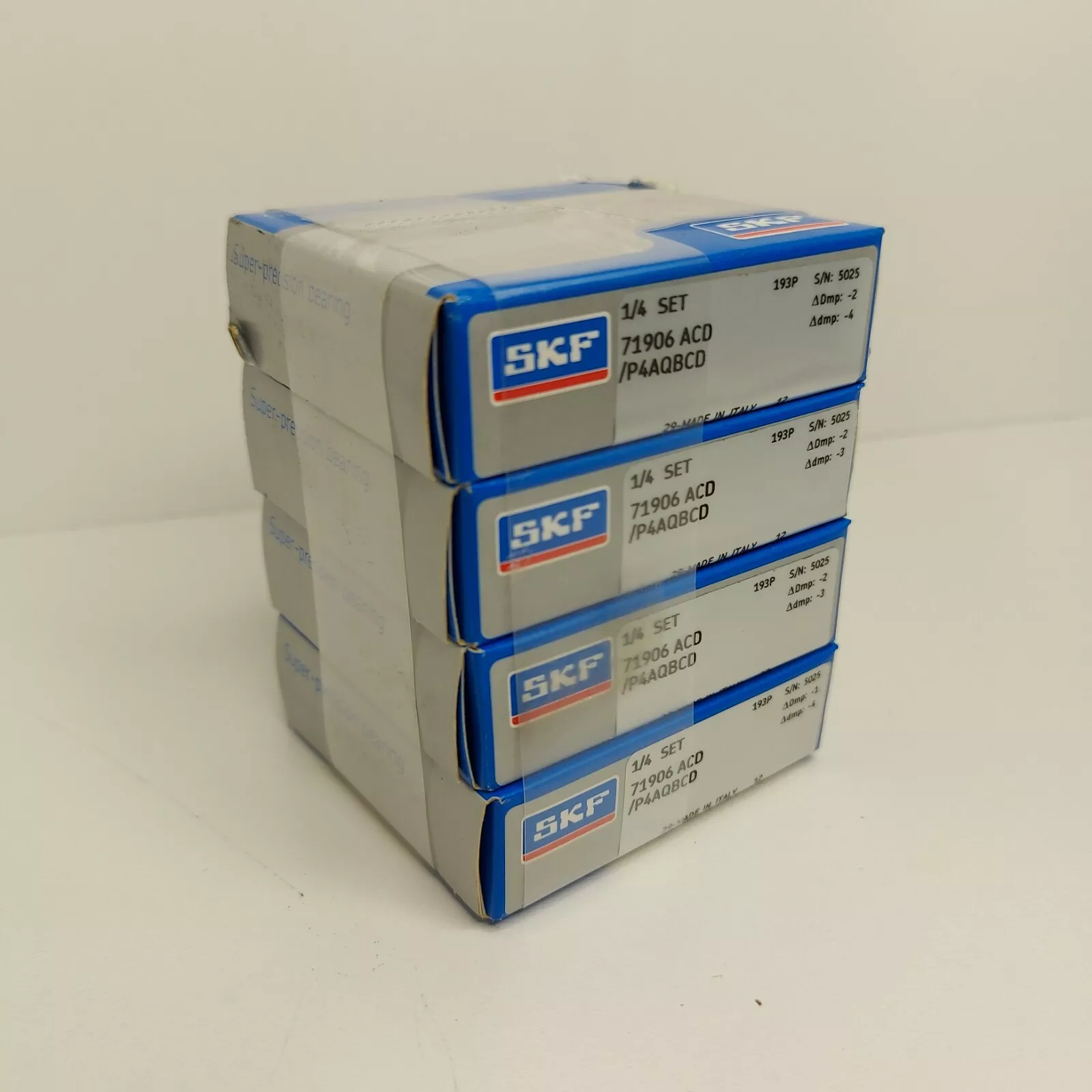 前缀列表:。后缀列表:【ACD:25° 接触角,高载荷设计】【/:分隔符】【P4A:尺寸公差符合 ISO 公差 4 级,几何公差符合 SKF 内部公差要求】。