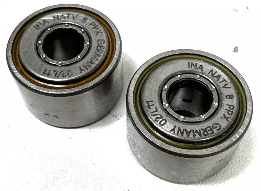 前缀列表:【NATV:圆柱滚子滚轮轴承,带两个压装式挡边,装有满装滚针】。后缀列表:【PP:两侧带接触式 PP 密封件】【X:经过改进的(扁平)外圈】。