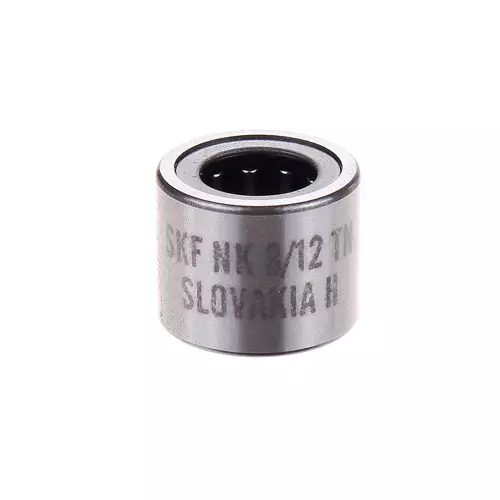 SKF NK8/12TN轴承属于带机削套圈、不带内圈的滚针轴承,滚子下直径:8 mm,外径:15 mm,宽度:12 mm,外圈倒角尺寸(min.):0.3 mm。